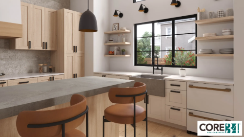 Sauder Cabinetry’s full-access RTA line, proudly built in Archbold, Ohio. Designed for builders, it cuts costs by 15% (vs. assembled) and features 2–4 week lead times. The unique cam and dowel construction ensures rapid assembly, and it is available through a full pallet quantity program. Standard features like soft-close hinges and drawer guides deliver premium quality.